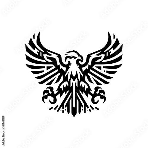 © Ari, Fototapeta premium Minimalist tribal eagle in flight with gaming claws