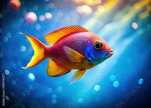 © Wanlop, Naklejka premium Minimalist Underwater Scene: Darting Fish in Blue