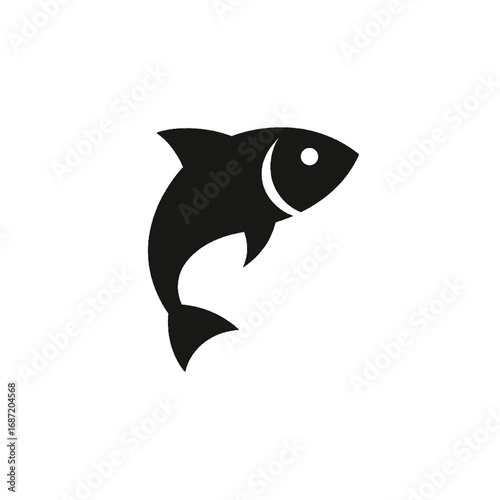 © Kamrulislam, Obraz premium Minimalist Upward Swimming Fish Icon – Black Symbol on White Background