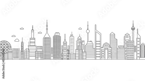 Fototapeta premium Minimalist Urban City Skyline Outline Awaiting Design and Color