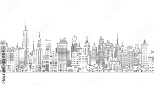 Naklejka premium Minimalist Urban Clean Outline Drawing of a City Skyline Ready for Color and...