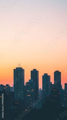 Fototapeta premium Minimalist Urban Silhouettes Against Sunset Gradient
