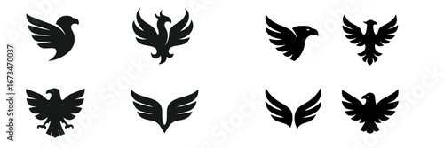 © Bundi, Obraz premium Minimalist vector illustrations of black birds with wings