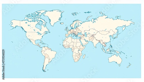 © Mohammad, Obraz premium Minimalist vector world map for wall decoration