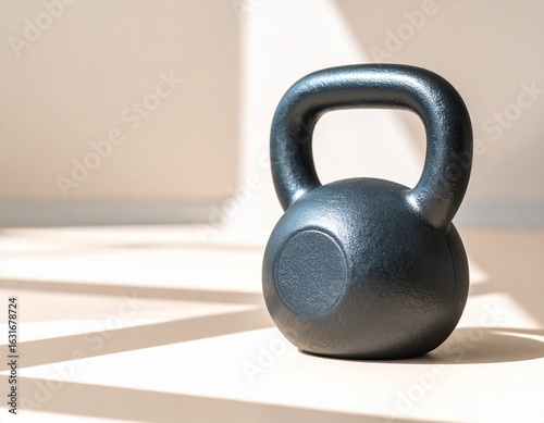 Fototapeta premium Minimalist visual of a kettlebell placed on the right against a charcoal...