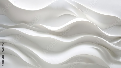 Fototapeta premium Minimalist wave shapes in white seamlessly integrate with a clean background,...