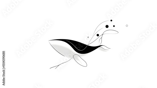 © pkproject, Obraz premium Minimalist whale with splashes