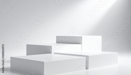 Fototapeta premium Minimalist white blocks rising in staggered formation under soft light