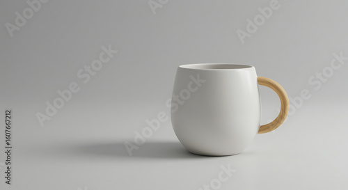 Obraz premium Minimalist White Ceramic Mug with a Natural Wooden Handle, Modern Beverage...