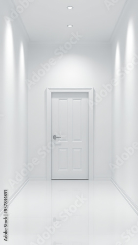 Fototapeta premium Minimalist White Corridor with Door