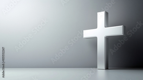 © Nazlykhan, Obraz premium Minimalist white cross on light gray background