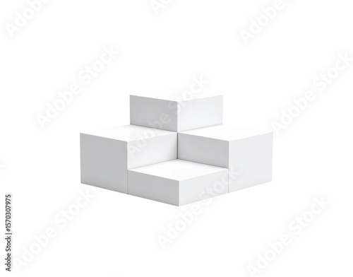 Obraz premium Minimalist White Cube Display Platform with Geometric Stair Step Design.