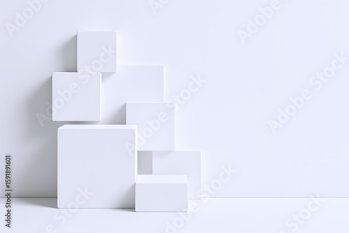 Fototapeta premium Minimalist white geometric cube sculpture display with clean modern design.