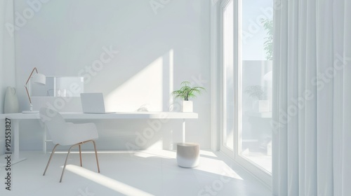 Fototapeta premium Minimalist White Home Office with Natural Light