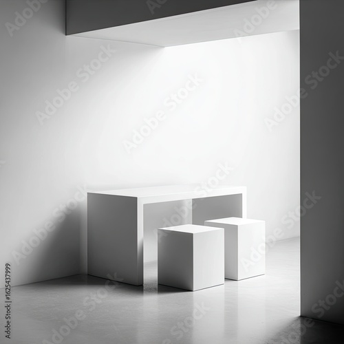 © SYAMSUL, Obraz premium Minimalist White Interior Design With Cubes