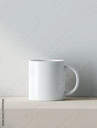 © Halal Vision Studio, Obraz premium Minimalist White Mug on Simple Surface