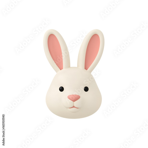 © yendisupiandi, Obraz premium Minimalist white rabbit head with pink accents on a clean isolated transparent layout