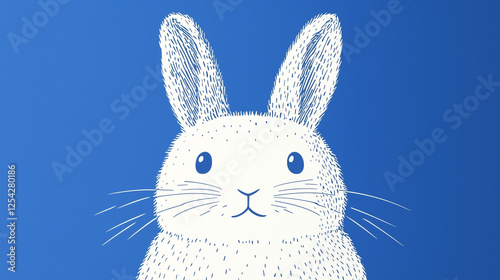 © Ilya, Fototapeta premium Minimalist white rabbit sitting peacefully against blue backdrop