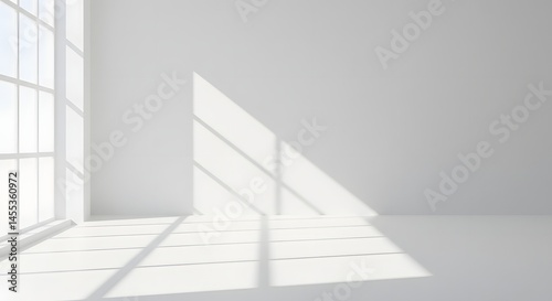Fototapeta premium Minimalist White Room Interior with Sunlight and Window Shadows - Empty...