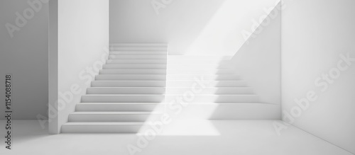 Fototapeta premium Minimalist white room with unrefined concrete stairs highlighting clean lines...