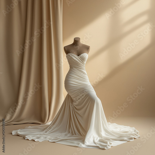 © Cozy Art, Fototapeta premium Minimalist white summer dress draped elegantly against a soft background