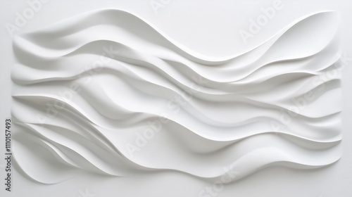 Fototapeta premium Minimalist white waves, softly flowing across a blank white surface, creating an abstract pattern