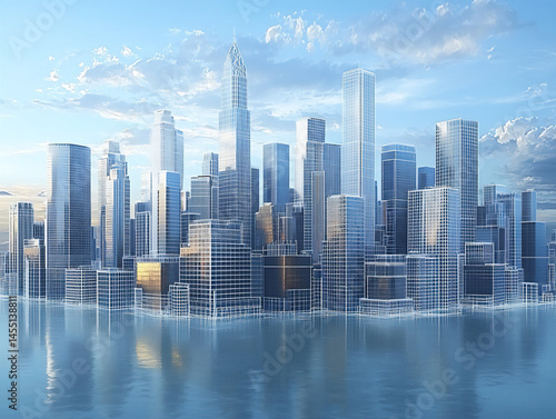 © Sung Hwan Kim, Fototapeta premium minimalist white wireframe city plan