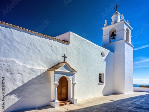 © Man888, Fototapeta premium Minimalist Whitewashed Church, Casares, Andalusia, Spain: Sunlit Architecture