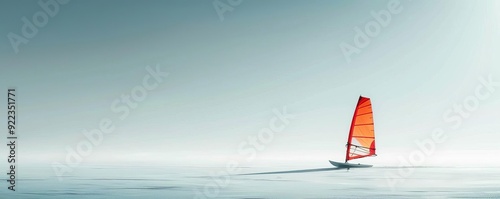 Fototapeta premium Minimalist windsurfing, single sail, white background, clean lines