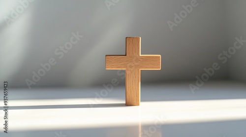 © Bubi Studio, Naklejka premium Minimalist Wooden Cross on Smooth White Surface