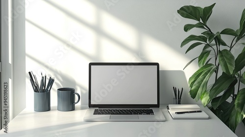 Fototapeta premium Minimalist Workspace with Laptop and Plant