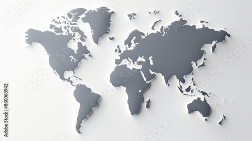 Fototapeta premium Minimalist world map displaying borders on a plain white background, without...