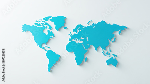 © Oatkhaphon, Fototapeta premium Minimalist world map in soft textured blue gradient on white background