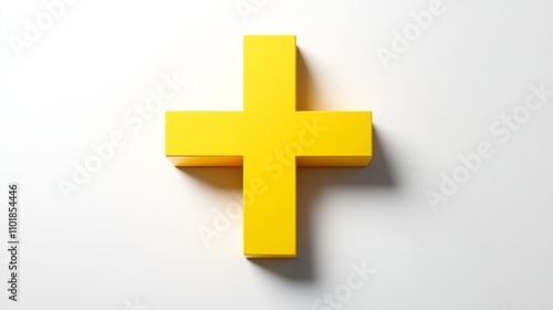 Obraz premium Minimalist Yellow Plus Symbol on White Background