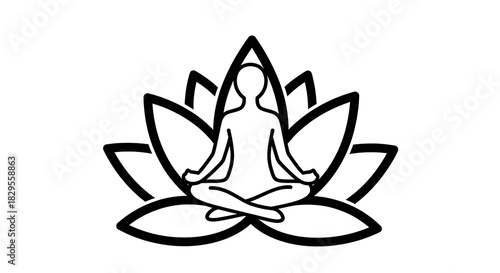 Fototapeta premium Minimalist yoga pose illustration within a lotus flower emblem design style