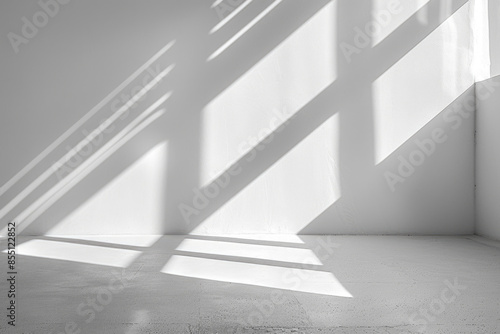 Fototapeta premium Minimalistic abstract light grey wall background for product presentation with sunlight shadow
