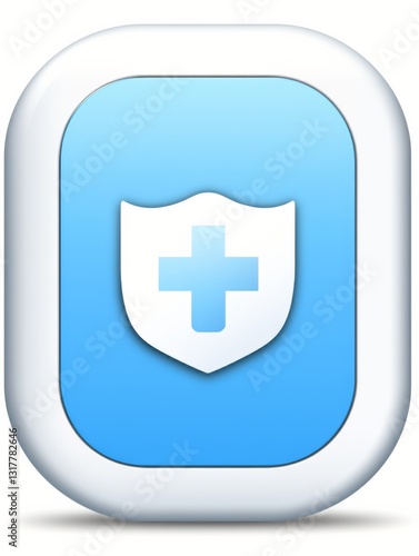 © kkkiim graphic, Fototapeta premium Minimalistic app icon with cloud, shield, gear, network symbol, and upward arrow on light blue background
