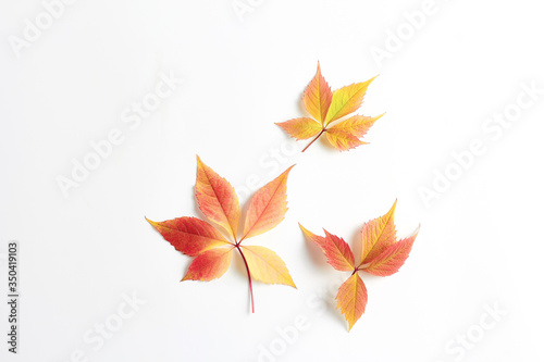 Fototapeta premium minimalistic autumn composition. beautiful leaves on a white background,...