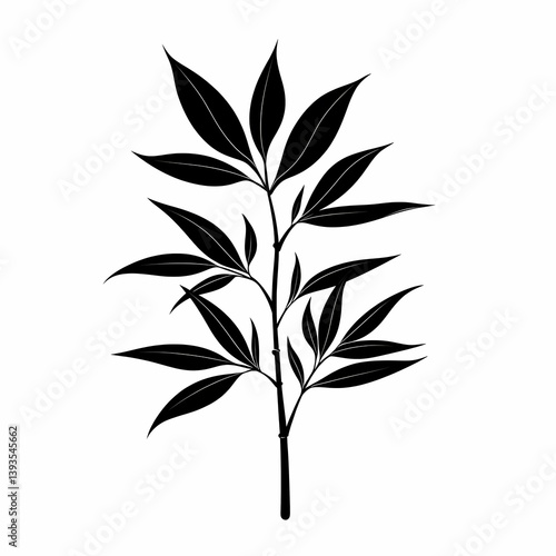 Fototapeta premium Minimalistic Black Silhouette Botanical Illustration: Lush Greenery and...