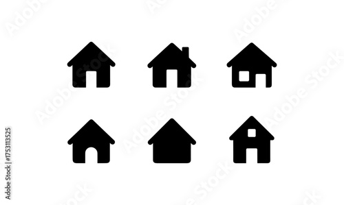 © ieps, Fototapeta premium Minimalistic black silhouette icons of home shapes on white background