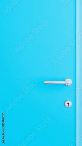 Obraz premium Minimalistic Blue Door with Silver Handle – Realistic Studio Lighting