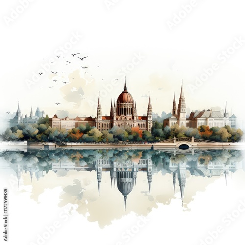 © Nastassia, Fototapeta premium Minimalistic Budapest Illustration Featuring Iconic City Landmarks