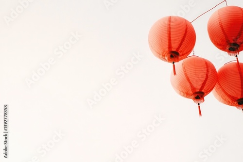 © Andrei, Obraz premium minimalistic composition of traditional chinese lanterns with clear sky background