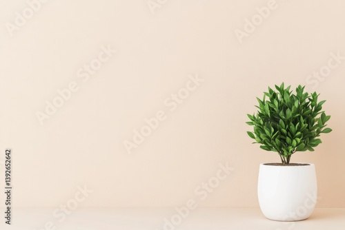 © Andrei, Fototapeta premium minimalistic composition with single green plant in white pot against plain beige background