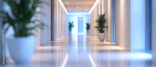 Fototapeta premium Minimalistic corporate office hallway with clean walls and plants