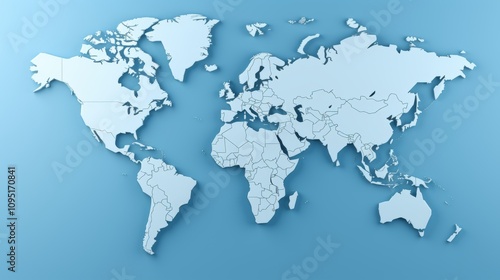 Fototapeta premium Minimalistic 3d world map design on soft blue gradient background for elegant presentation