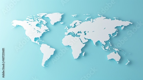 © Vlad Darii, Obraz premium Minimalistic 3d world map on soft blue gradient background with simplified representation