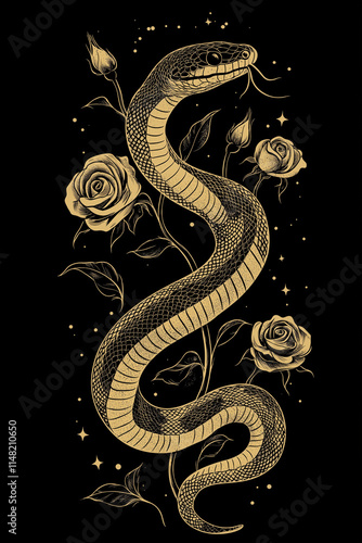 © Idrees, Obraz premium Minimalistic Flat Vector Line Art Snake Roses