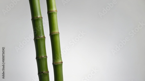 Obraz premium Minimalistic green bamboo stalks against a soft gray background highlighting...