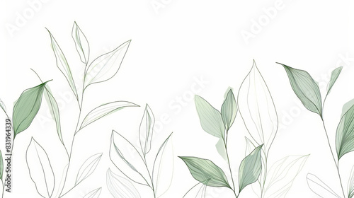 Naklejka premium Minimalistic green line drawing of multiple leaves on a white background